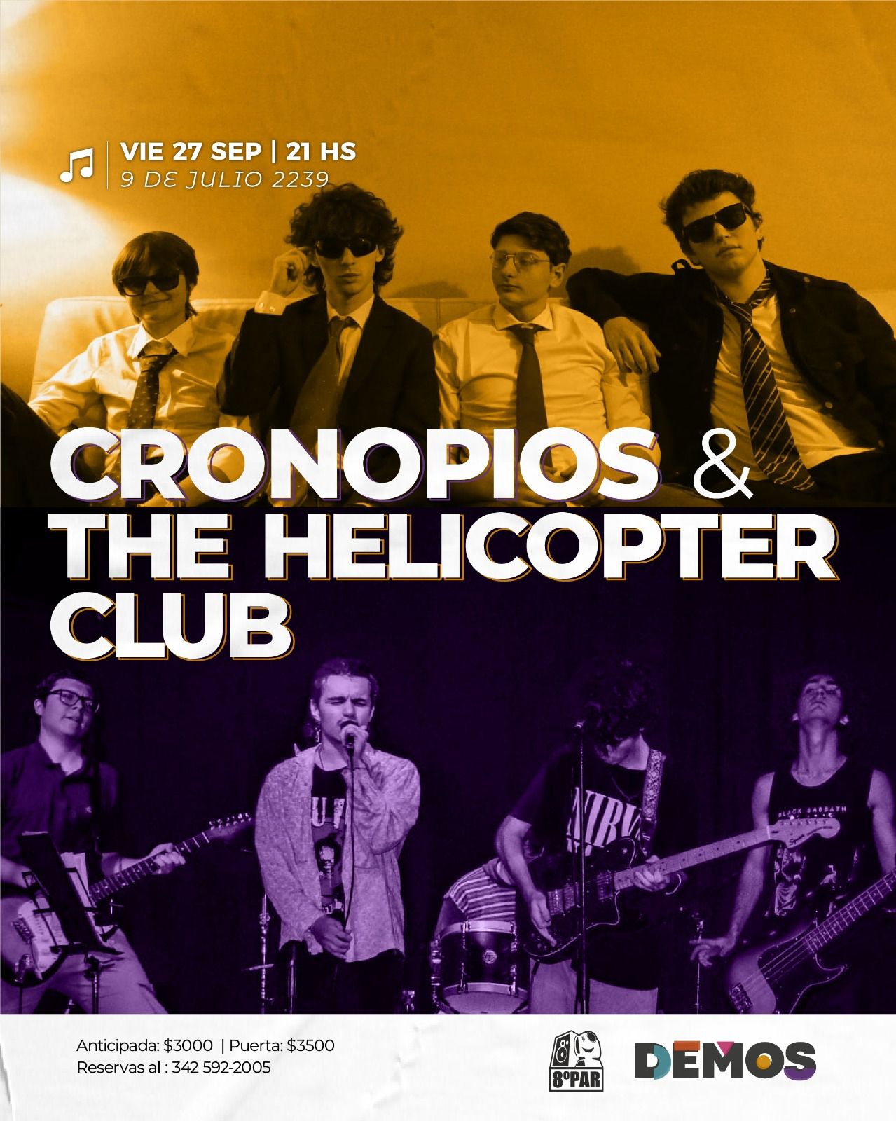 Entradas anticipadas $3.000, en puerta $3.500