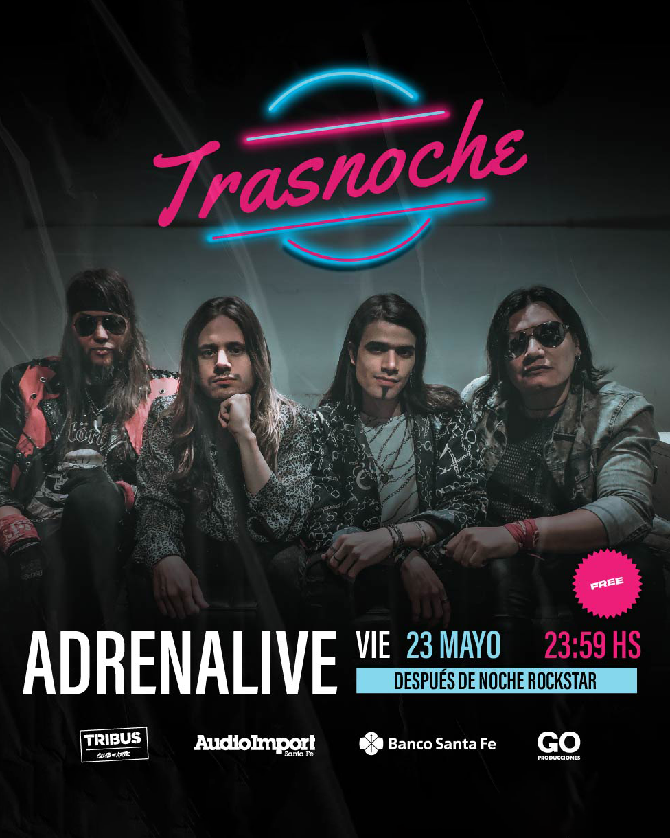 El viernes 23 de mayo a las 23.59 h, Adrenalive llega al Trasnoche de Tribus con todo el hard rock y glam metal, presentando temas propios y covers de referentes como Dokken, Poison, Skid Row, Motley Crûe y más! Entrada libre y gratuita.