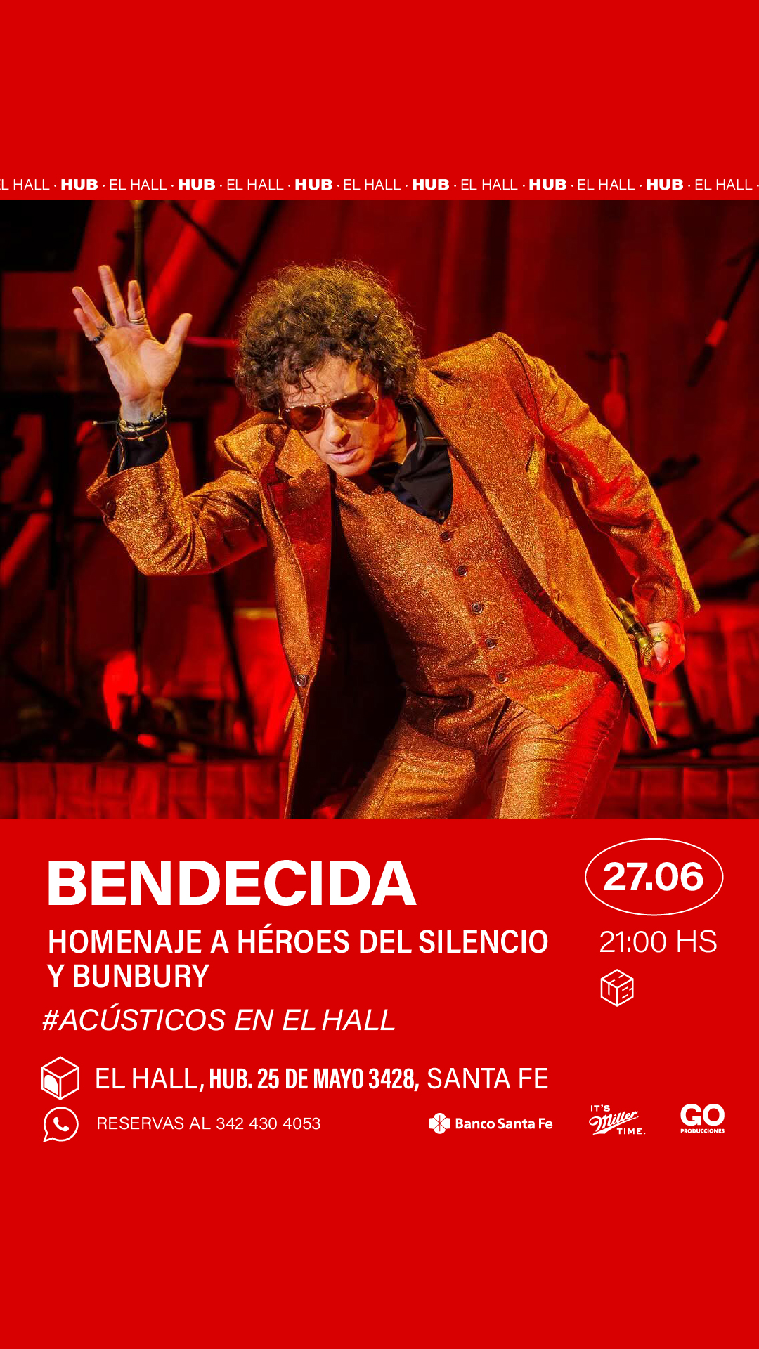 El viernes 27 de junio a las 21 h, Bendecida presenta su homenaje a Enrique Búnbury, con todos los éxitos de Héroes del Silencio y su carrera solista. Entrada libre y gratuita.