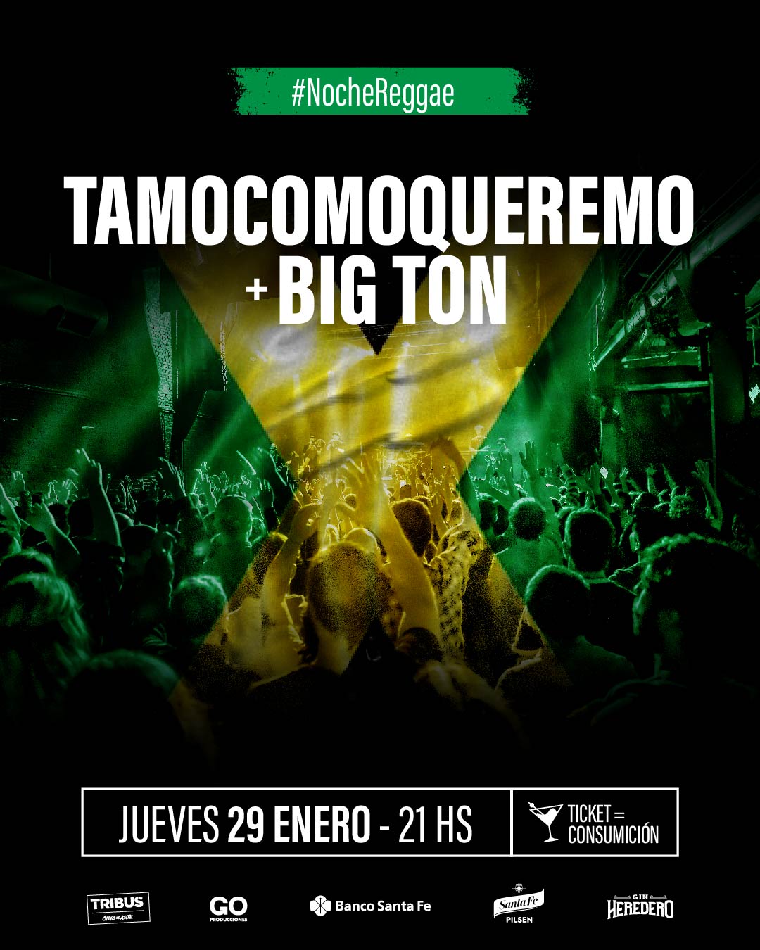 El jueves 29 de enero a las 21 hs, vení a disfrutar de una noche con el mejor reggae local de la mano de Big Ton y Tamocomoqueremo. Adquirí tu ticket válido por una consumición en la boletería de Tribus.