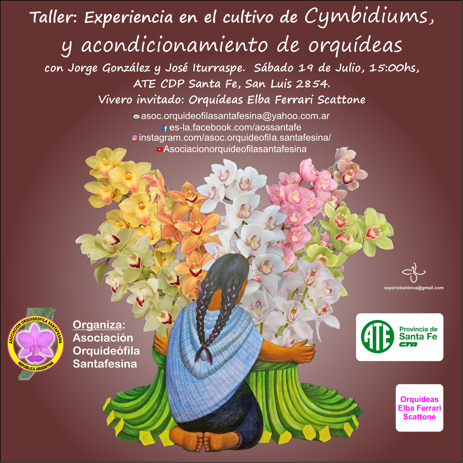 Taller introductorio ideal para aquellos que se inician en el cultivo de orquídeas, especialmente en el género Cymbidium, se hablará de repoteo, soportes, sustratos y acondicionamiento de orquídeas para exposiciones y mantenerlas en el hogar.