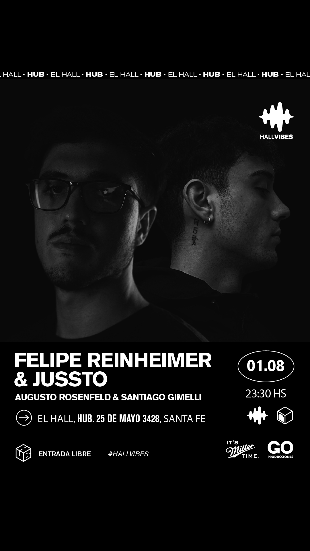 El jueves 1 de agosto a las 23.30 hs, las mejores noches las vivís en Hall Vibes de HUB, con los sets de Felipe Reinheimer & Jussto y Augusto