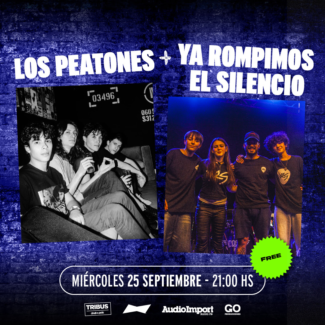 El miércoles 25 de septiembre a las 21 hs, vení a descubrir las mejores bandas de la nueva generación del rock santafesino de la mano de Los Peatones y Ya Rompimos el Silencio, ambas con clásicos del rock nacional y composiciones propias. Entrada libre y gratuita.