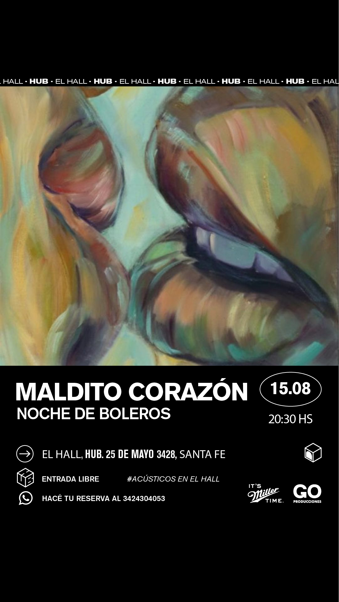 El jueves 15 de agosto a las 20.30 hs, Maldito Corazón regresa a los Acústicos en El Hall con los mejores boleros de amor y desamor. Entrada libre y gratuita.