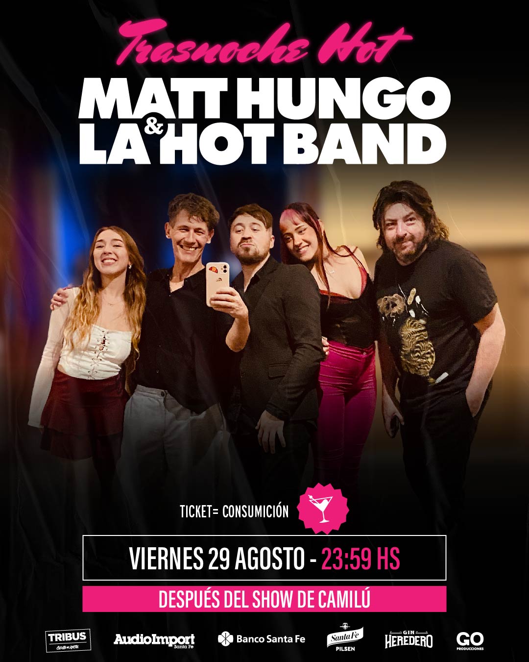 El viernes 29 de agosto a las 23.59 h, Matt Hungo & La Hot Band llega a la Trasnoche de Tribus para bailar toda la noche con los clásicos del funk de ayer y hoy. Adquirí tu ticket válido por una consumición en la boletería de Tribus.