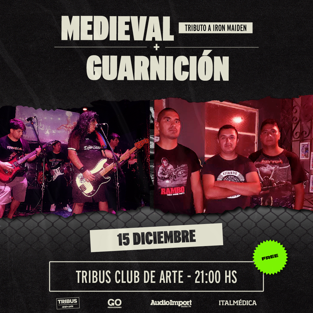 El domingo 15 de diciembre a las 21 hs, vení a vivir una noche a puro metal con los shows de Medieval (tributo a Iron Maiden) junto a Guarnición. Entrada libre y gratuita.