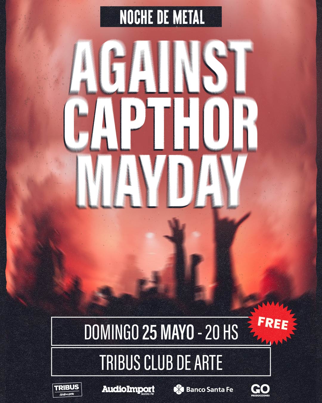 El domingo 25 de mayo a las 20 h, viví lo mejor del metal con los shows de Against, Capthor y Mayday. Entrada libre y gratuita.