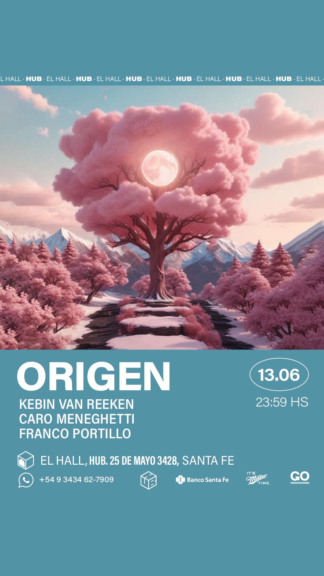 El viernes 13 de junio a las 23.59 h, Origen, el reconocido ciclo de progressive house de la ciudad de Santa Fe, cumple un año y lo festeja en El Hall con el DJ y productor holandes Kebin Van Reeken junto a Caro Meneghetti y Franco Portillo. Entradas al 343462-7909.