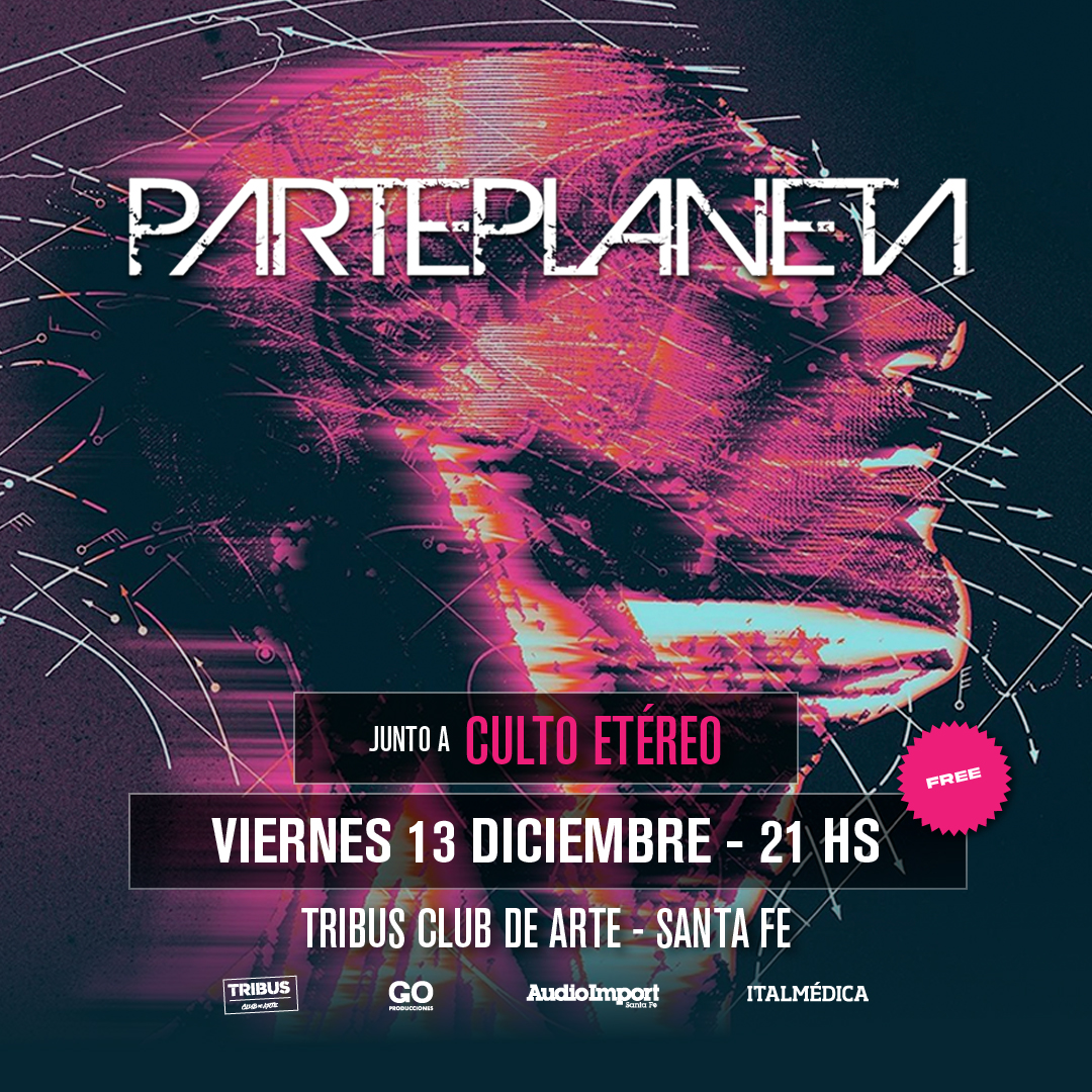 El viernes 13 de diciembre a las 21 hs, Parteplaneta cierra el año en Santa Fe con un show único cargado de melodía y distorsión. Como banda invitada estará Culto Etéreo, finalista del Concurso de Bandas 2024 de Tribus Club de Arte. Entrada libre y gratuita.