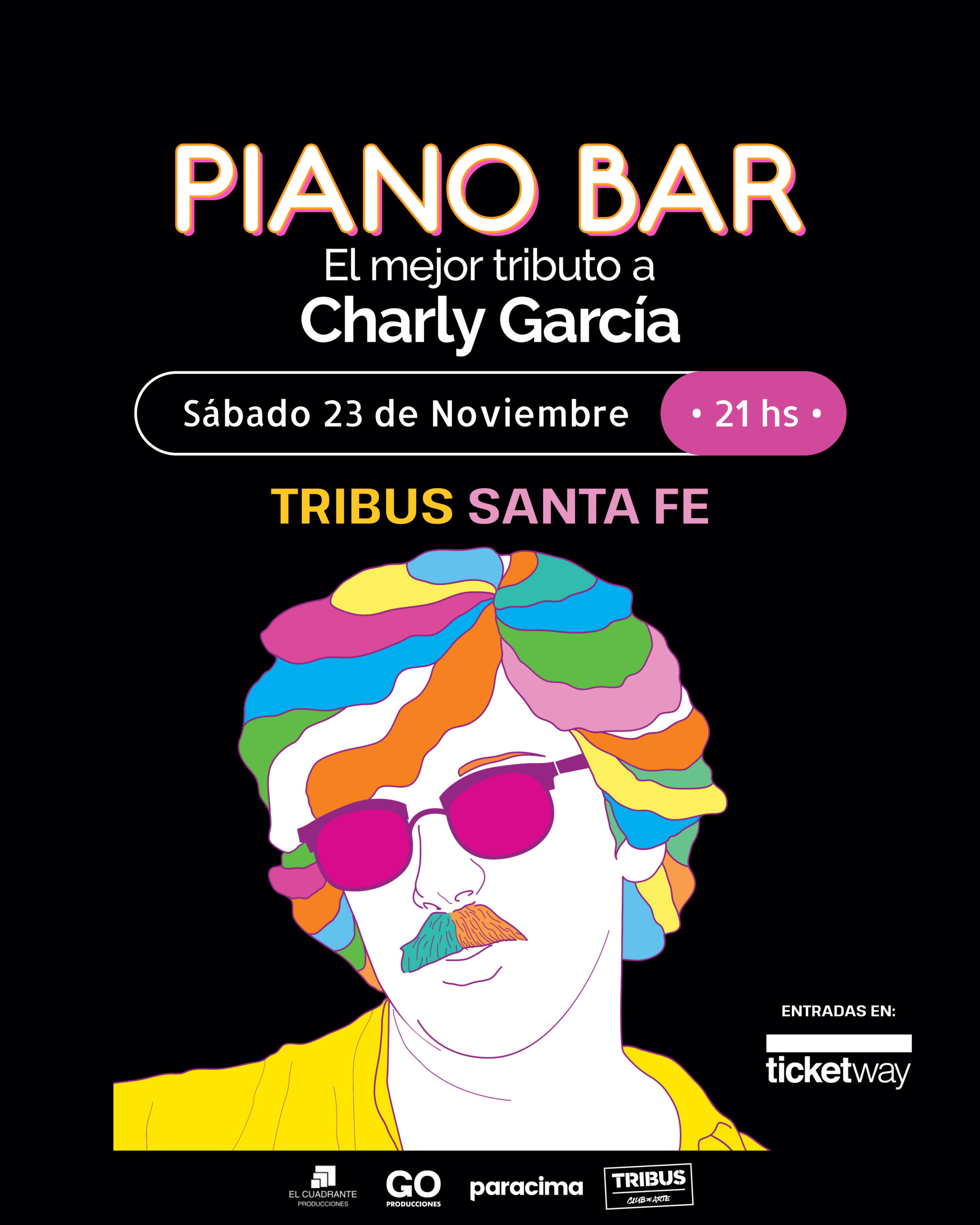 Piano Bar, el mejor tributo a Charly García, recorre en cada concierto la extensa trayectoria de García, incluyendo canciones de Sui Generis, Serú Girán y su carrera solista, sin apelar a la imitación, pero respetando arreglos, sonidos y climas de las versiones originales. Con una puesta escena imponente y un amplio despliegue, Piano Bar, trae los clásicos sonidos de García al presente y proyectándolos al futuro, como resguardo de uno de los legados más importantes de la música moderna de nuestro país.