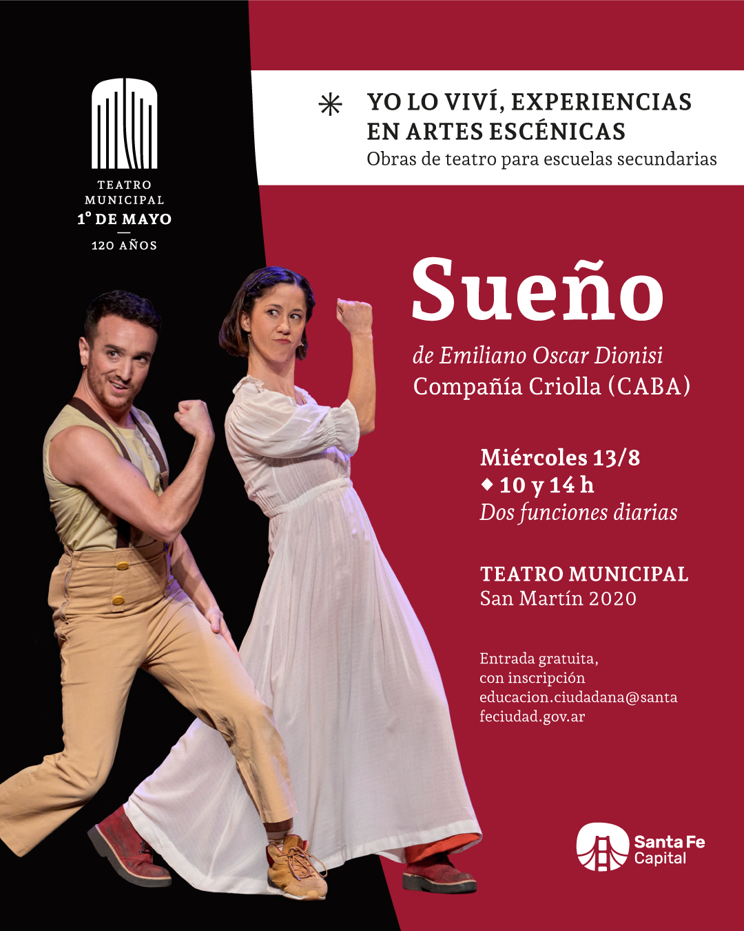 “Sueño” de Emiliano Oscar Dionisi (Compañía Criolla, Buenos Aires) es la tercera obra que se exhibirá en el marco de “Yo Lo Viví, experiencias en artes escénicas”, programación que busca acercar a los adolescentes santafesinos a los beneficios de ver, sentir y vivir la disciplina artística teatral. Será el miércoles 13 de agosto en dos funciones, a las 10 y a las 14 h, en la Sala Mayor del Teatro Municipal. La entrada es gratuita con inscripción previa en [email protected].