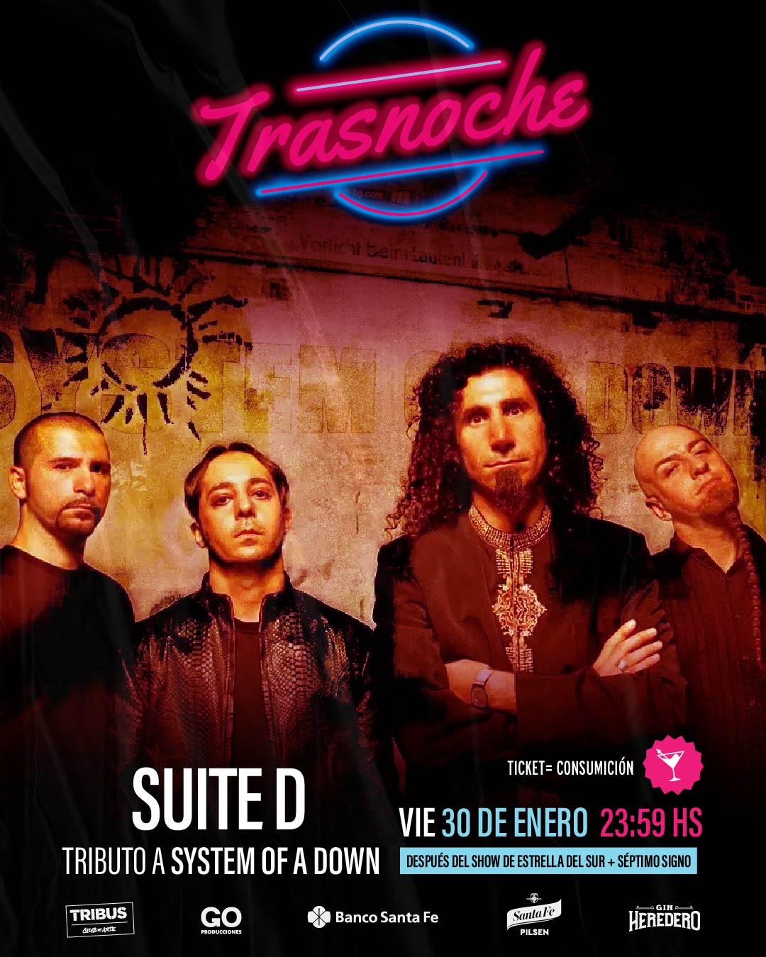 El viernes 30 de enero a las 23.59 hs, Suite D regresa a Tribus con todos los clásicos de System Of a Down. Adquirí tu ticket válido por una consumición en la boletería de Tribus.