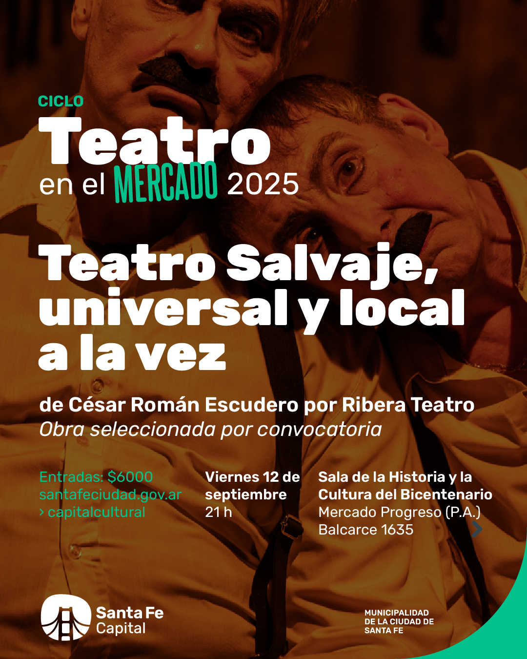 La obra “Teatro Salvaje, local y universal a la vez”, se presentará el viernes 12 de septiembre a las 21 h en la Sala de la Historia y la Cultura del Bicentenario del Mercado Progreso, en el marco del ciclo “Teatro en el Mercado”
