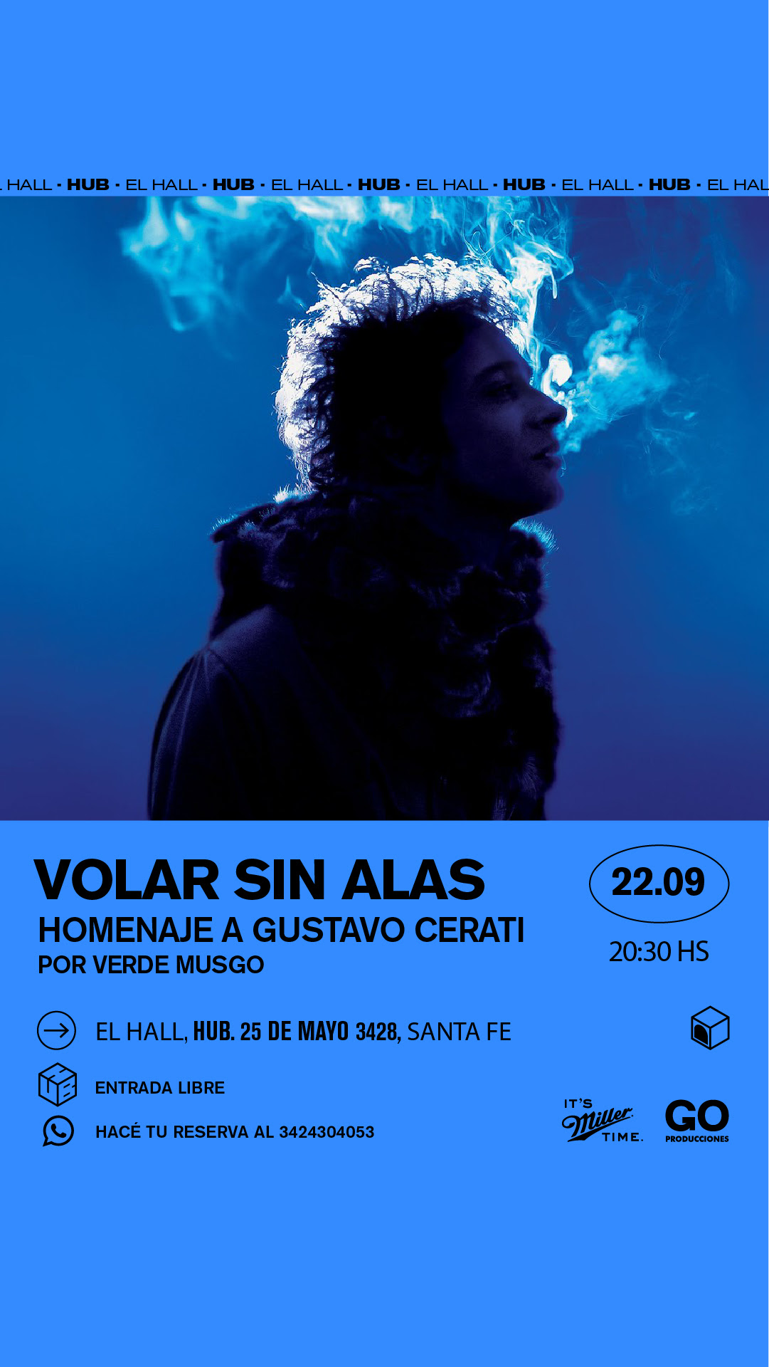 El domingo 22 de septiembre a las 20.30 hs, Verde Musgo vuelve a HUB con “Volar sin alas”, su homenaje a Gustavo Cerati. Entrada libre y gratuita.