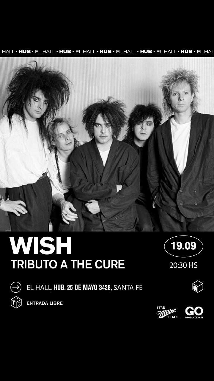 El jueves 19 de septiembre a las 20.30 hs, no te pierdas todos los clásicos de la banda liderada por Robert Smith a cargo de Wish (tributo a The Cure) Entrada libre y gratuita.