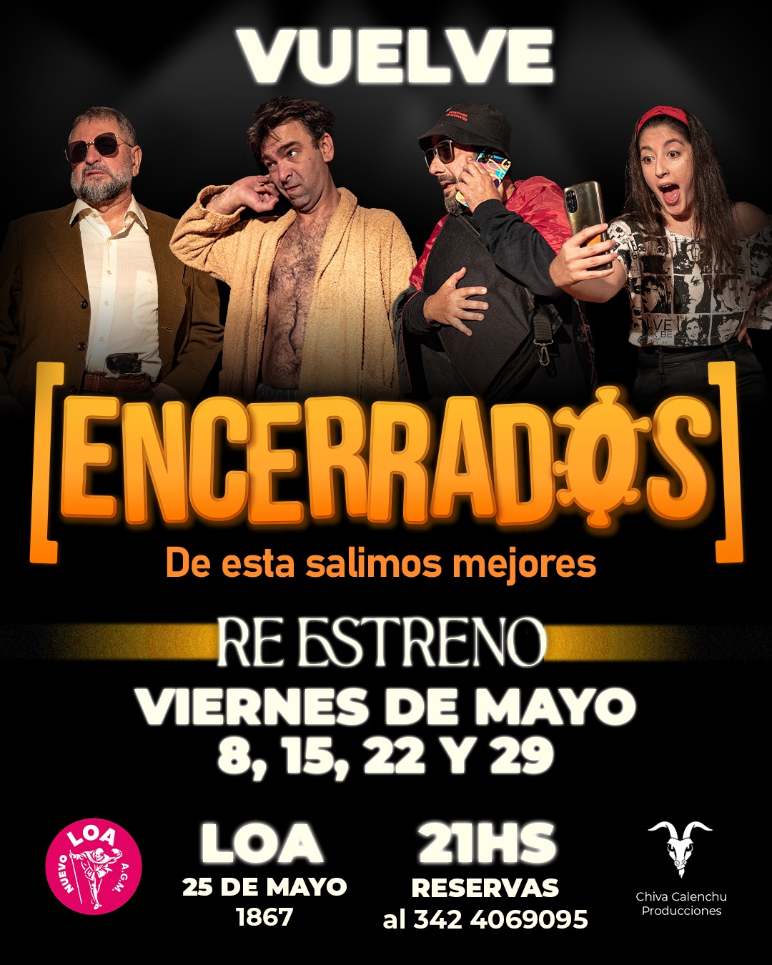 Encerrados, de ésta salimos mejores, de Juan Manuel Berlanga y Maximiliano Ahumada Dirección: Hernán Raúl Rosa La comedia argentina que arranca carcajadas de un momento clave de la historia...