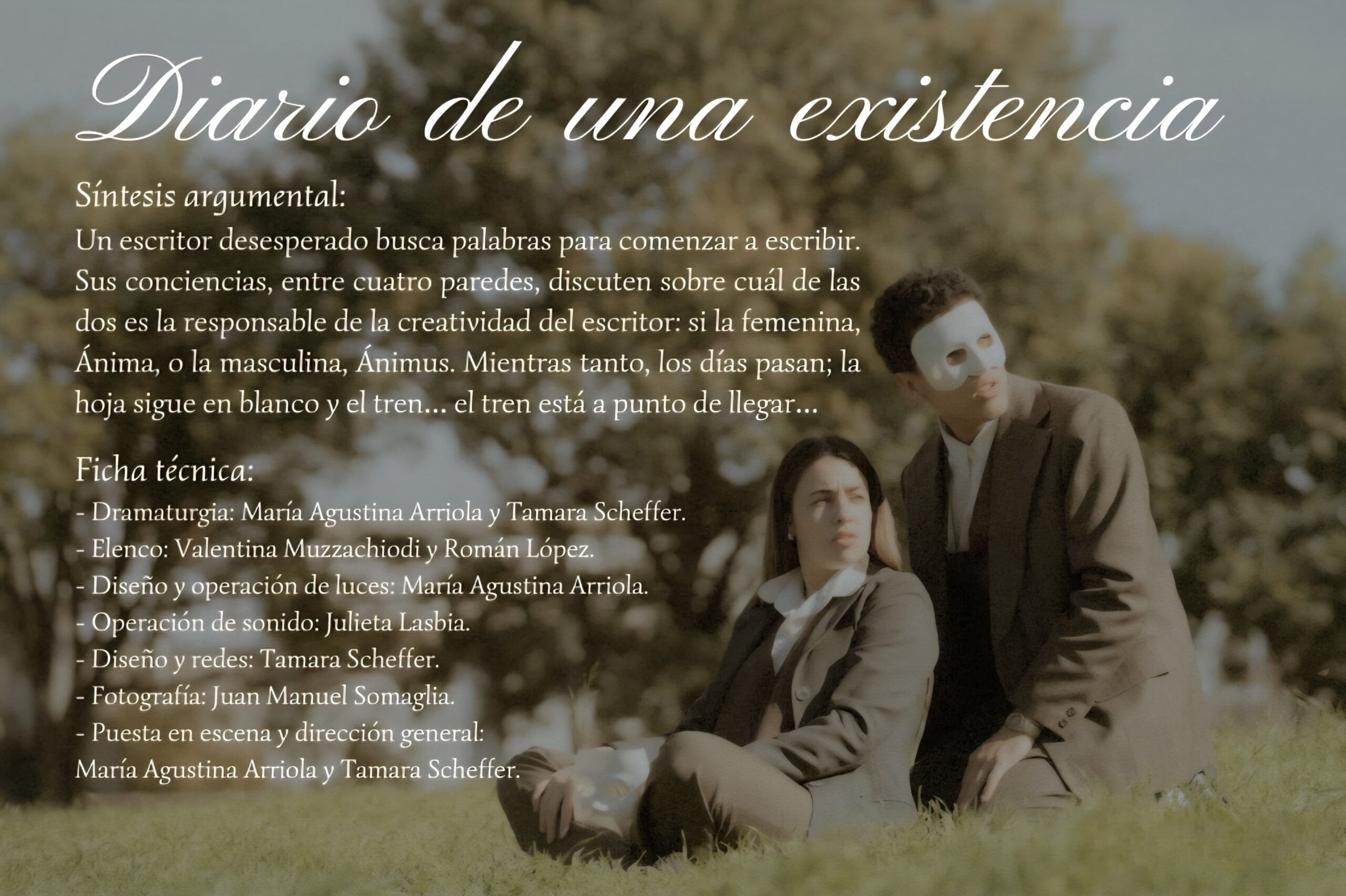 Un escritor en la búsqueda de las palabras para escribir, debatiéndose en su consciencia femenina y masculina mientras el tren está por llegar....