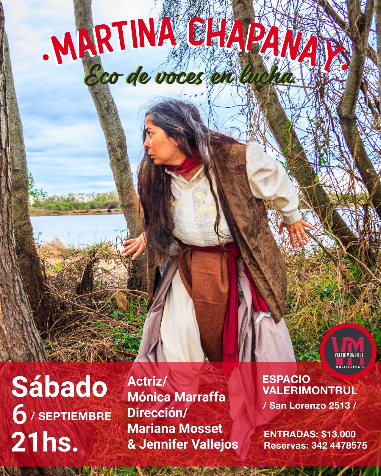 Unipersonal que representa a Martina Chapanay una montonera huarpe (indígena) del 1800 que luchó junto a Peñaloza, Facundo Quiroga. Puesta minimalista donde el cuerpo convoca al ritual de esta mujer indómita