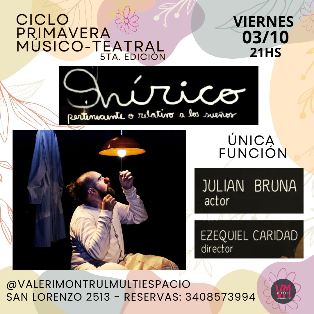 Onírico: “Perteneciente o relativo a los sueños” Entre lo real y lo fantástico, Onírico propone un viaje a través de los sueños, donde el tiempo se suspende y las imágenes toman cuerpo. Con humor, poesía visual y una atmósfera que oscila entre la ternura y el asombro, la obra nos invita a habitar un universo donde...