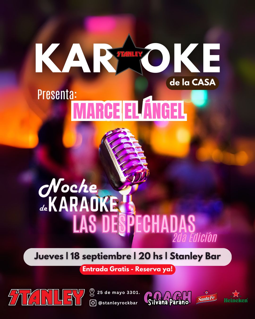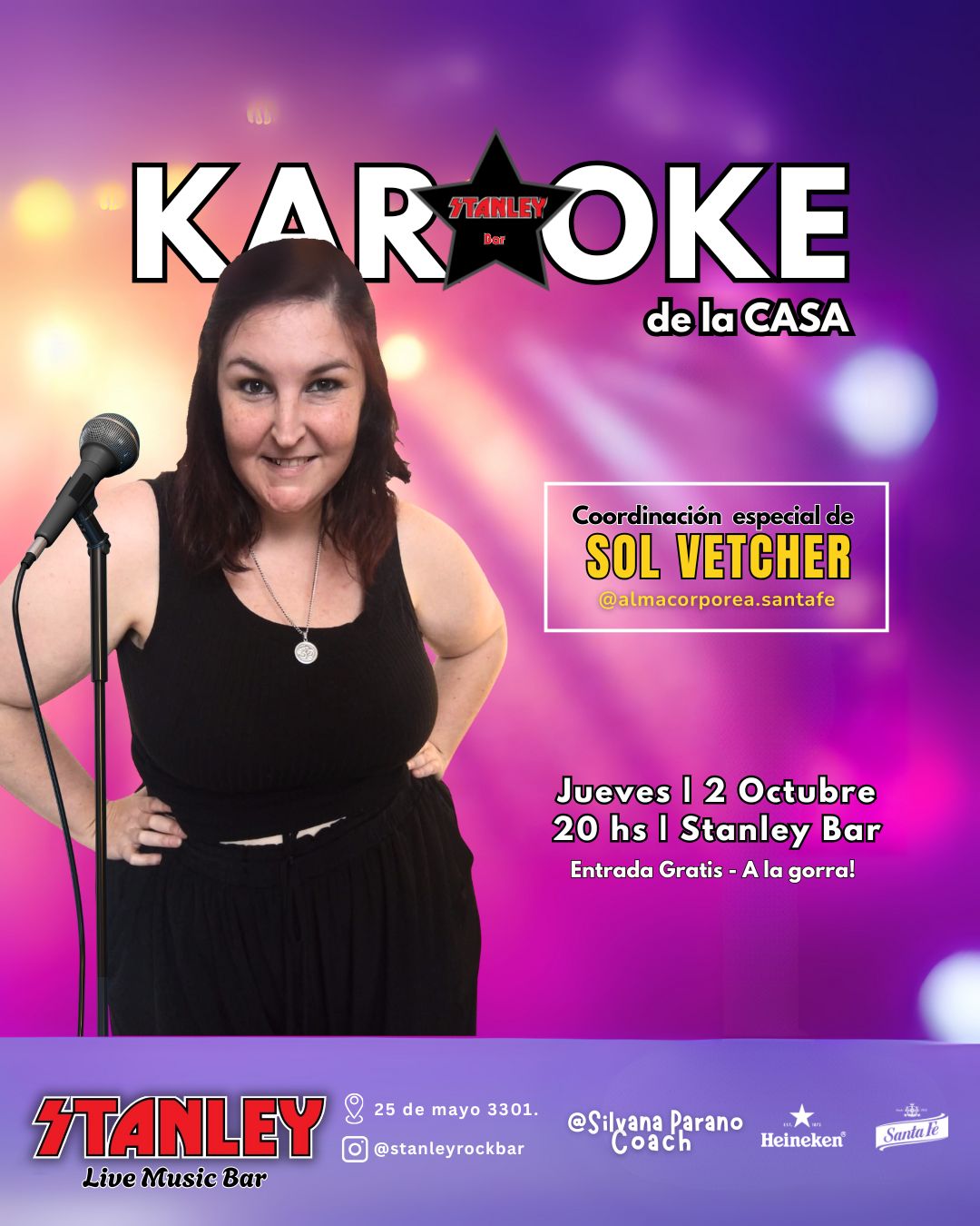 Stanley Rock Bar 25 de Mayo 330, Santa Fe, Santa Fe, ArgentinaTe invitamos a vivir una nueva forma de Karaoke Este domingo 12 de octubre | 20:30 hs en Stanley Bar Vas a experimentar algo diferente: Una Micro Conferencia Motivacional (15/20 min) a cargo de Silvana Parano, donde vas a conectar con lo que decís, lo que cantás y lo que deseás. Porque cuando tu voz...