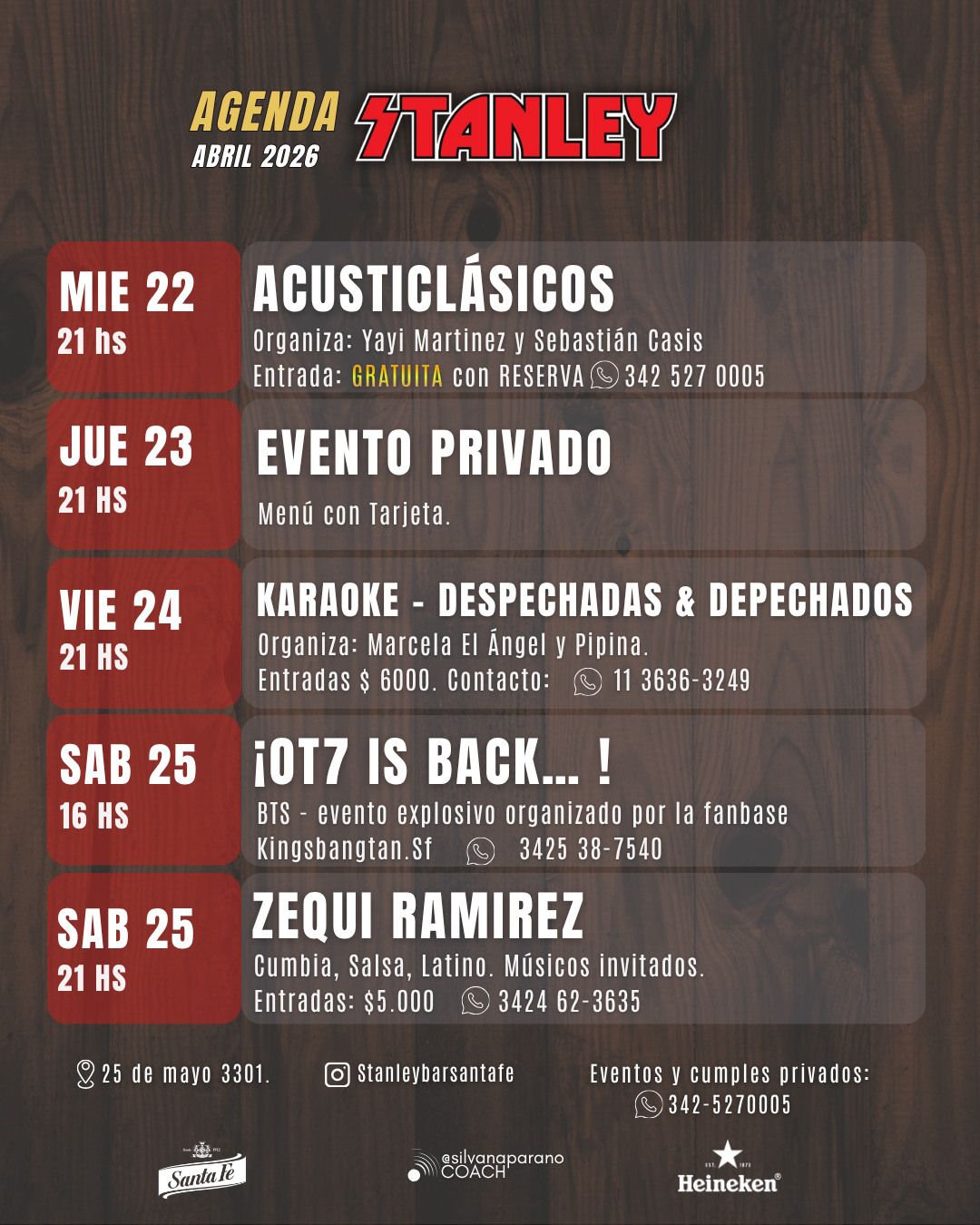 ¡ESTA SEMANA EN STANLEY! 🎸🔥 Se viene una agenda cargada de música, fiesta y momentos inolvidables. Mirá lo que tenemos preparado para vos: MIÉ 22 | 21 HS: Regresan los...