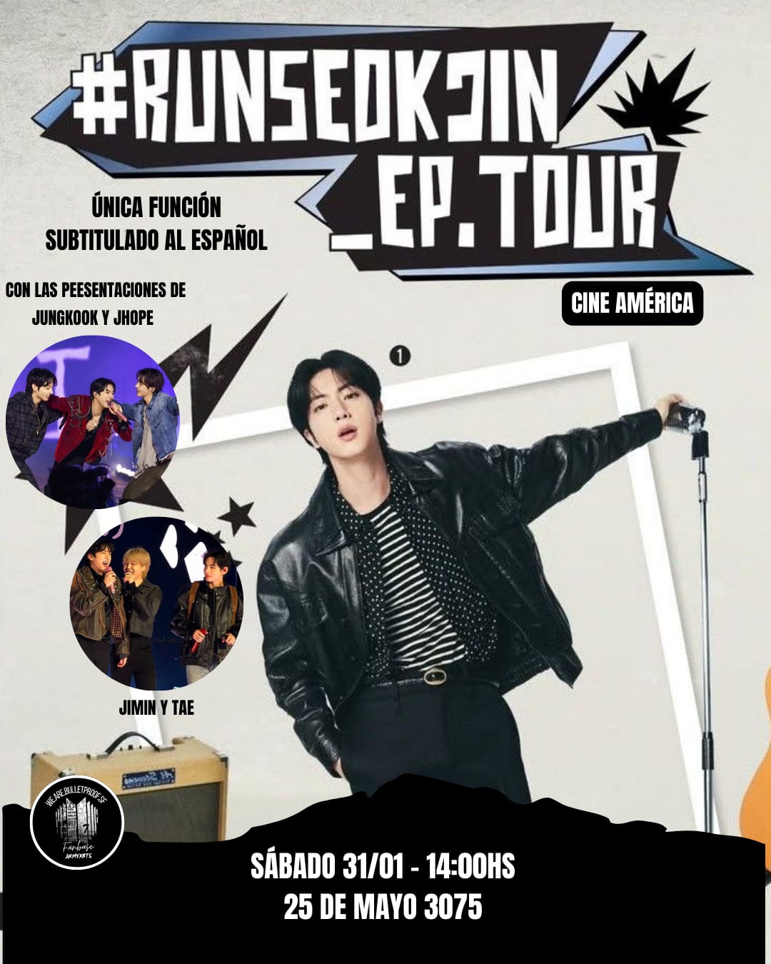 Vuelve el fanclub WE.ARE.BULLETPROOF.SF de BTS con otro ciclo de proyecciones, y esta vez transmitiendo el concierto #RunSeokjin_Ep.tour con las presentaciones de Hobi, JK, Tae y Jimin. ¡Completamente subtitulado al...